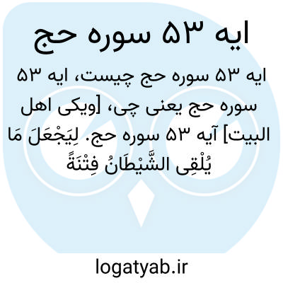 [ویکی اهل البیت] آیه 53 سوره حج. لِیَجْعَلَ مَا یُلْقِی الشَّیْطَانُ فِتْنَةً لِلَّذِینَ فِی قُلُوبِهِمْ مَرَضٌ وَالْقَاسِیَةِ قُلُوبُهُمْ ۗ وَإِنَّ الظَّالِمِینَ لَفِی شِقَاقٍ بَعِیدٍ