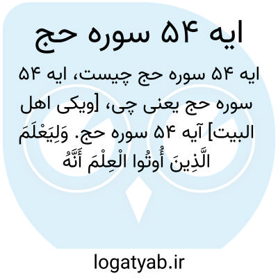 [ویکی اهل البیت] آیه 54 سوره حج. وَلِیَعْلَمَ الَّذِینَ أُوتُوا الْعِلْمَ أَنَّهُ الْحَقُّ مِنْ رَبِّکَ فَیُؤْمِنُوا بِهِ فَتُخْبِتَ لَهُ قُلُوبُهُمْ ۗ وَإِنَّ اللَّهَ لَهَادِ الَّذِینَ آمَنُوا إِلَیٰ صِرَاطٍ مُسْتَقِیمٍ