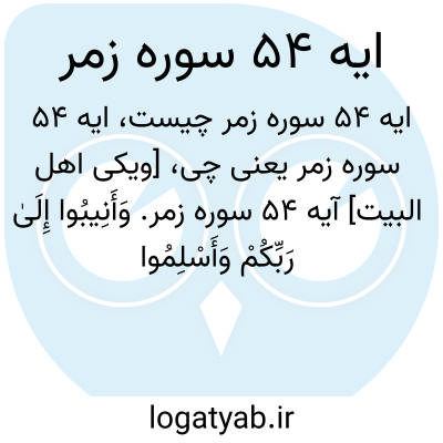 [ویکی اهل البیت] آیه 54 سوره زمر. وَأَنِیبُوا إِلَیٰ رَبِّکُمْ وَأَسْلِمُوا لَهُ مِنْ قَبْلِ أَنْ یَأْتِیَکُمُ الْعَذَابُ ثُمَّ لَا تُنْصَرُونَ