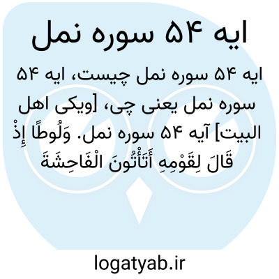 [ویکی اهل البیت] آیه 54 سوره نمل. وَلُوطًا إِذْ قَالَ لِقَوْمِهِ أَتَأْتُونَ الْفَاحِشَةَ وَأَنْتُمْ تُبْصِرُونَ