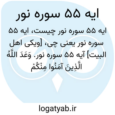 [ویکی اهل البیت] آیه 55 سوره نور. وَعَدَ اللَّهُ الَّذِینَ آمَنُوا مِنْکُمْ وَعَمِلُوا الصَّالِحَاتِ لَیَسْتَخْلِفَنَّهُمْ فِی الْأَرْضِ کَمَا اسْتَخْلَفَ الَّذِینَ مِنْ قَبْلِهِمْ وَلَیُمَکِّنَنَّ لَهُمْ دِینَهُمُ الَّذِی ارْتَضَیٰ لَهُمْ وَلَیُبَدِّلَنَّهُمْ مِنْ بَعْدِ خَوْفِهِمْ أَمْنًا ۚ یَعْبُدُونَنِی لَا یُشْرِکُونَ بِی شَیْئًا ۚ وَمَنْ کَفَرَ بَعْدَ ذَٰلِکَ فَأُولَٰئِکَ هُمُ الْفَاسِقُونَ