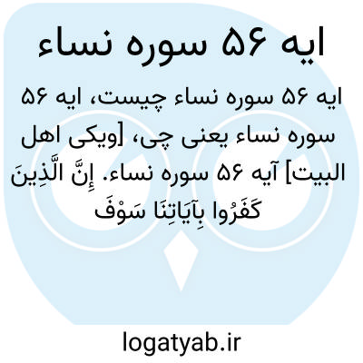 [ویکی اهل البیت] آیه 56 سوره نساء. إِنَّ الَّذِینَ کَفَرُوا بِآیَاتِنَا سَوْفَ نُصْلِیهِمْ نَارًا کُلَّمَا نَضِجَتْ جُلُودُهُمْ بَدَّلْنَاهُمْ جُلُودًا غَیْرَهَا لِیَذُوقُوا الْعَذَابَ ۗ إِنَّ اللَّهَ کَانَ عَزِیزًا حَکِیمًا