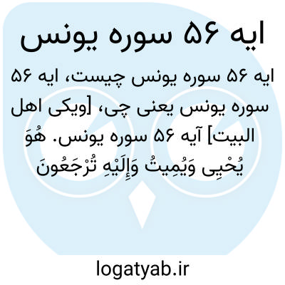 [ویکی اهل البیت] آیه 56 سوره یونس. هُوَ یُحْیِی وَیُمِیتُ وَإِلَیْهِ تُرْجَعُونَ