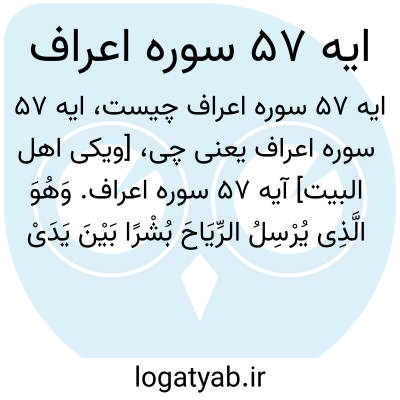 [ویکی اهل البیت] آیه 57 سوره اعراف. وَهُوَ الَّذِی یُرْسِلُ الرِّیَاحَ بُشْرًا بَیْنَ یَدَیْ رَحْمَتِهِ ۖ حَتَّیٰ إِذَا أَقَلَّتْ سَحَابًا ثِقَالًا سُقْنَاهُ لِبَلَدٍ مَیِّتٍ فَأَنْزَلْنَا بِهِ الْمَاءَ فَأَخْرَجْنَا بِهِ مِنْ کُلِّ الثَّمَرَاتِ ۚ کَذَٰلِکَ نُخْرِجُ الْمَوْتَیٰ لَعَلَّکُمْ تَذَکَّرُونَ