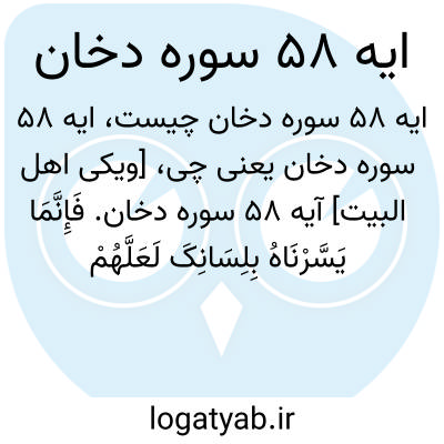[ویکی اهل البیت] آیه 58 سوره دخان. فَإِنَّمَا یَسَّرْنَاهُ بِلِسَانِکَ لَعَلَّهُمْ یَتَذَکَّرُونَ