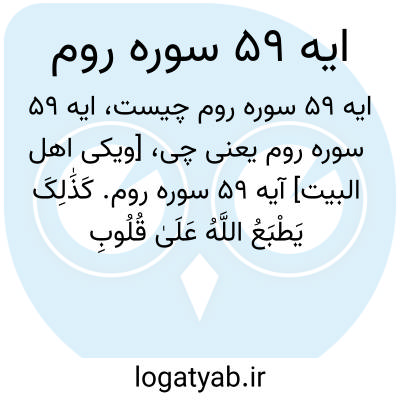 [ویکی اهل البیت] آیه 59 سوره روم. کَذَٰلِکَ یَطْبَعُ اللَّهُ عَلَیٰ قُلُوبِ الَّذِینَ لَا یَعْلَمُونَ
