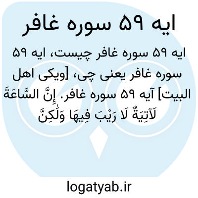 [ویکی اهل البیت] آیه 59 سوره غافر. إِنَّ السَّاعَةَ لَآتِیَةٌ لَا رَیْبَ فِیهَا وَلَٰکِنَّ أَکْثَرَ النَّاسِ لَا یُؤْمِنُونَ