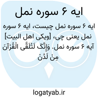 [ویکی اهل البیت] آیه 6 سوره نمل. وَإِنَّکَ لَتُلَقَّی الْقُرْآنَ مِنْ لَدُنْ حَکِیمٍ عَلِیمٍ