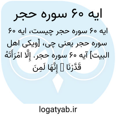[ویکی اهل البیت] آیه 60 سوره حجر. إِلَّا امْرَأَتَهُ قَدَّرْنَا ۙ إِنَّهَا لَمِنَ الْغَابِرِینَ