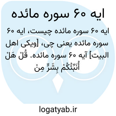 [ویکی اهل البیت] آیه 60 سوره مائده. قُلْ هَلْ أُنَبِّئُکُمْ بِشَرٍّ مِنْ ذَٰلِکَ مَثُوبَةً عِنْدَ اللَّهِ ۚ مَنْ لَعَنَهُ اللَّهُ وَغَضِبَ عَلَیْهِ وَجَعَلَ مِنْهُمُ الْقِرَدَةَ وَالْخَنَازِیرَ وَعَبَدَ الطَّاغُوتَ ۚ أُولَٰئِکَ شَرٌّ مَکَانًا وَأَضَلُّ عَنْ سَوَاءِ السَّبِیلِ