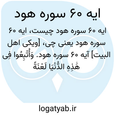 [ویکی اهل البیت] آیه 60 سوره هود. وَأُتْبِعُوا فِی هَٰذِهِ الدُّنْیَا لَعْنَةً وَیَوْمَ الْقِیَامَةِ ۗ أَلَا إِنَّ عَادًا کَفَرُوا رَبَّهُمْ ۗ أَلَا بُعْدًا لِعَادٍ قَوْمِ هُودٍ