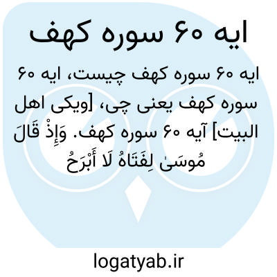 [ویکی اهل البیت] آیه 60 سوره کهف. وَإِذْ قَالَ مُوسَیٰ لِفَتَاهُ لَا أَبْرَحُ حَتَّیٰ أَبْلُغَ مَجْمَعَ الْبَحْرَیْنِ أَوْ أَمْضِیَ حُقُبًا