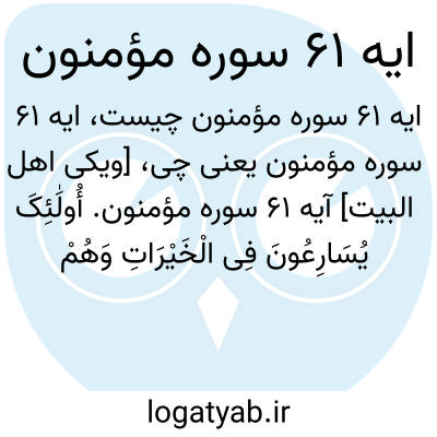 [ویکی اهل البیت] آیه 61 سوره مؤمنون. أُولَٰئِکَ یُسَارِعُونَ فِی الْخَیْرَاتِ وَهُمْ لَهَا سَابِقُونَ