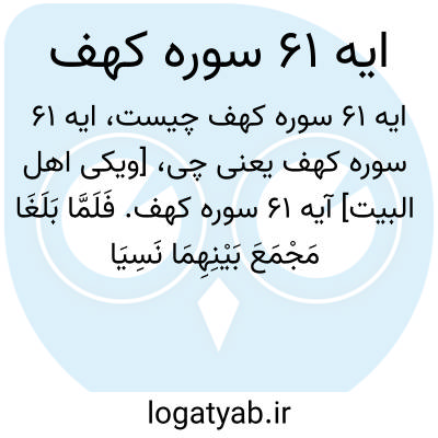 [ویکی اهل البیت] آیه 61 سوره کهف. فَلَمَّا بَلَغَا مَجْمَعَ بَیْنِهِمَا نَسِیَا حُوتَهُمَا فَاتَّخَذَ سَبِیلَهُ فِی الْبَحْرِ سَرَبًا