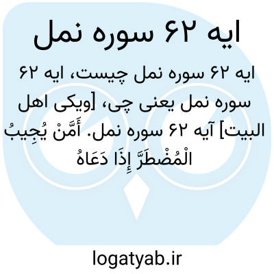[ویکی اهل البیت] آیه 62 سوره نمل. أَمَّنْ یُجِیبُ الْمُضْطَرَّ إِذَا دَعَاهُ وَیَکْشِفُ السُّوءَ وَیَجْعَلُکُمْ خُلَفَاءَ الْأَرْضِ ۗ أَإِلَٰهٌ مَعَ اللَّهِ ۚ قَلِیلًا مَا تَذَکَّرُونَ