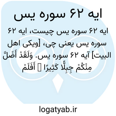 [ویکی اهل البیت] آیه 62 سوره یس. وَلَقَدْ أَضَلَّ مِنْکُمْ جِبِلًّا کَثِیرًا ۖ أَفَلَمْ تَکُونُوا تَعْقِلُونَ