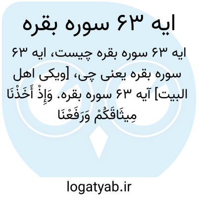 [ویکی اهل البیت] آیه 63 سوره بقره. وَإِذْ أَخَذْنَا مِیثَاقَکُمْ وَرَفَعْنَا فَوْقَکُمُ الطُّورَ خُذُوا مَا آتَیْنَاکُمْ بِقُوَّةٍ وَاذْکُرُوا مَا فِیهِ لَعَلَّکُمْ تَتَّقُونَ