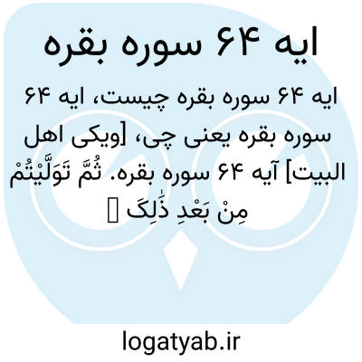 [ویکی اهل البیت] آیه 64 سوره بقره. ثُمَّ تَوَلَّیْتُمْ مِنْ بَعْدِ ذَٰلِکَ ۖ فَلَوْلَا فَضْلُ اللَّهِ عَلَیْکُمْ وَرَحْمَتُهُ لَکُنْتُمْ مِنَ الْخَاسِرِینَ