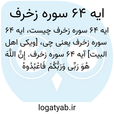 [ویکی اهل البیت] آیه 64 سوره زخرف. إِنَّ اللَّهَ هُوَ رَبِّی وَرَبُّکُمْ فَاعْبُدُوهُ ۚ هَٰذَا صِرَاطٌ مُسْتَقِیمٌ
