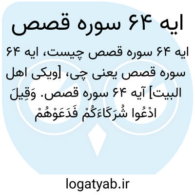 [ویکی اهل البیت] آیه 64 سوره قصص. وَقِیلَ ادْعُوا شُرَکَاءَکُمْ فَدَعَوْهُمْ فَلَمْ یَسْتَجِیبُوا لَهُمْ وَرَأَوُا الْعَذَابَ ۚ لَوْ أَنَّهُمْ کَانُوا یَهْتَدُونَ