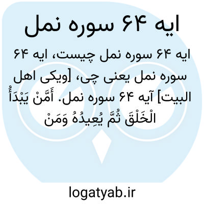 [ویکی اهل البیت] آیه 64 سوره نمل. أَمَّنْ یَبْدَأُ الْخَلْقَ ثُمَّ یُعِیدُهُ وَمَنْ یَرْزُقُکُمْ مِنَ السَّمَاءِ وَالْأَرْضِ ۗ أَإِلَٰهٌ مَعَ اللَّهِ ۚ قُلْ هَاتُوا بُرْهَانَکُمْ إِنْ کُنْتُمْ صَادِقِینَ