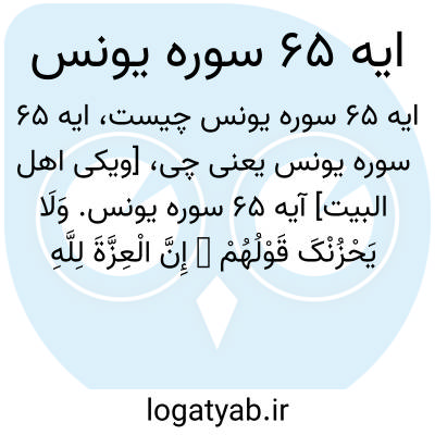[ویکی اهل البیت] آیه 65 سوره یونس. وَلَا یَحْزُنْکَ قَوْلُهُمْ ۘ إِنَّ الْعِزَّةَ لِلَّهِ جَمِیعًا ۚ هُوَ السَّمِیعُ الْعَلِیمُ