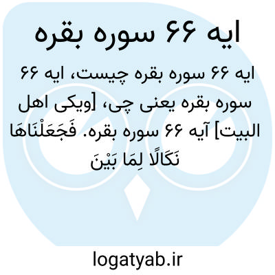 [ویکی اهل البیت] آیه 66 سوره بقره. فَجَعَلْنَاهَا نَکَالًا لِمَا بَیْنَ یَدَیْهَا وَمَا خَلْفَهَا وَمَوْعِظَةً لِلْمُتَّقِینَ