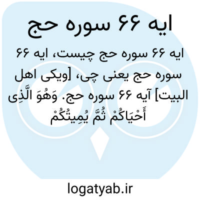 [ویکی اهل البیت] آیه 66 سوره حج. وَهُوَ الَّذِی أَحْیَاکُمْ ثُمَّ یُمِیتُکُمْ ثُمَّ یُحْیِیکُمْ ۗ إِنَّ الْإِنْسَانَ لَکَفُورٌ