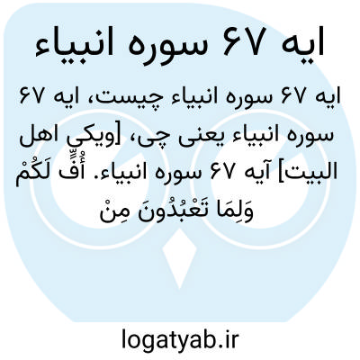 [ویکی اهل البیت] آیه 67 سوره انبیاء. أُفٍّ لَکُمْ وَلِمَا تَعْبُدُونَ مِنْ دُونِ اللَّهِ ۖ أَفَلَا تَعْقِلُونَ