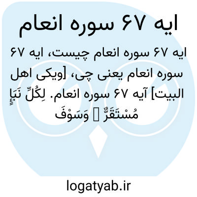 [ویکی اهل البیت] آیه 67 سوره انعام. لِکُلِّ نَبَإٍ مُسْتَقَرٌّ ۚ وَسَوْفَ تَعْلَمُونَ
