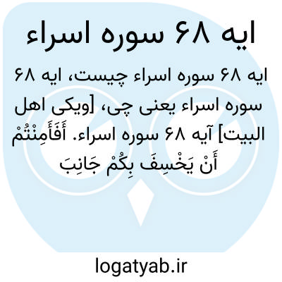 [ویکی اهل البیت] آیه 68 سوره اسراء. أَفَأَمِنْتُمْ أَنْ یَخْسِفَ بِکُمْ جَانِبَ الْبَرِّ أَوْ یُرْسِلَ عَلَیْکُمْ حَاصِبًا ثُمَّ لَا تَجِدُوا لَکُمْ وَکِیلًا