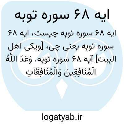 [ویکی اهل البیت] آیه 68 سوره توبه. وَعَدَ اللَّهُ الْمُنَافِقِینَ وَالْمُنَافِقَاتِ وَالْکُفَّارَ نَارَ جَهَنَّمَ خَالِدِینَ فِیهَا ۚ هِیَ حَسْبُهُمْ ۚ وَلَعَنَهُمُ اللَّهُ ۖ وَلَهُمْ عَذَابٌ مُقِیمٌ