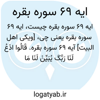 [ویکی اهل البیت] آیه 69 سوره بقره. قَالُوا ادْعُ لَنَا رَبَّکَ یُبَیِّنْ لَنَا مَا لَوْنُهَا ۚ قَالَ إِنَّهُ یَقُولُ إِنَّهَا بَقَرَةٌ صَفْرَاءُ فَاقِعٌ لَوْنُهَا تَسُرُّ النَّاظِرِینَ