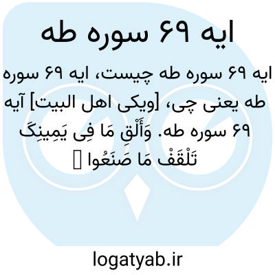 [ویکی اهل البیت] آیه 69 سوره طه. وَأَلْقِ مَا فِی یَمِینِکَ تَلْقَفْ مَا صَنَعُوا ۖ إِنَّمَا صَنَعُوا کَیْدُ سَاحِرٍ ۖ وَلَا یُفْلِحُ السَّاحِرُ حَیْثُ أَتَیٰ