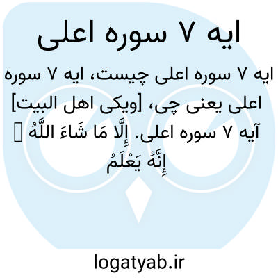 [ویکی اهل البیت] آیه 7 سوره اعلی. إِلَّا مَا شَاءَ اللَّهُ ۚ إِنَّهُ یَعْلَمُ الْجَهْرَ وَمَا یَخْفَیٰ