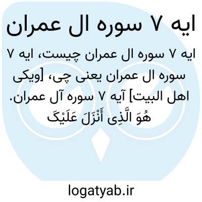 [ویکی اهل البیت] آیه 7 سوره آل عمران. هُوَ الَّذِی أَنْزَلَ عَلَیْکَ الْکِتَابَ مِنْهُ آیَاتٌ مُحْکَمَاتٌ هُنَّ أُمُّ الْکِتَابِ وَأُخَرُ مُتَشَابِهَاتٌ ۖ فَأَمَّا الَّذِینَ فِی قُلُوبِهِمْ زَیْغٌ فَیَتَّبِعُونَ مَا تَشَابَهَ مِنْهُ ابْتِغَاءَ الْفِتْنَةِ وَابْتِغَاءَ تَأْوِیلِهِ ۗ وَمَا یَعْلَمُ تَأْوِیلَهُ إِلَّا اللَّهُ ۗ وَالرَّاسِخُونَ فِی الْعِلْمِ یَقُولُونَ آمَنَّا بِهِ کُلٌّ مِنْ عِنْدِ رَبِّنَا ۗ وَمَا یَذَّکَّرُ إِلَّا أُولُو الْأَلْبَابِ