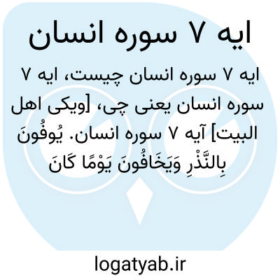 [ویکی اهل البیت] آیه 7 سوره انسان. یُوفُونَ بِالنَّذْرِ وَیَخَافُونَ یَوْمًا کَانَ شَرُّهُ مُسْتَطِیرًا