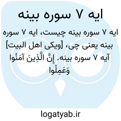 [ویکی اهل البیت] آیه 7 سوره بینه. إِنَّ الَّذِینَ آمَنُوا وَعَمِلُوا الصَّالِحَاتِ أُولَٰئِکَ هُمْ خَیْرُ الْبَرِیَّةِ