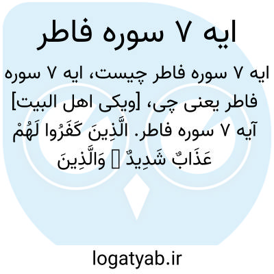 [ویکی اهل البیت] آیه 7 سوره فاطر. الَّذِینَ کَفَرُوا لَهُمْ عَذَابٌ شَدِیدٌ ۖ وَالَّذِینَ آمَنُوا وَعَمِلُوا الصَّالِحَاتِ لَهُمْ مَغْفِرَةٌ وَأَجْرٌ کَبِیرٌ