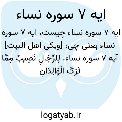 [ویکی اهل البیت] آیه 7 سوره نساء. لِلرِّجَالِ نَصِیبٌ مِمَّا تَرَکَ الْوَالِدَانِ وَالْأَقْرَبُونَ وَلِلنِّسَاءِ نَصِیبٌ مِمَّا تَرَکَ الْوَالِدَانِ وَالْأَقْرَبُونَ مِمَّا قَلَّ مِنْهُ أَوْ کَثُرَ ۚ نَصِیبًا مَفْرُوضًا