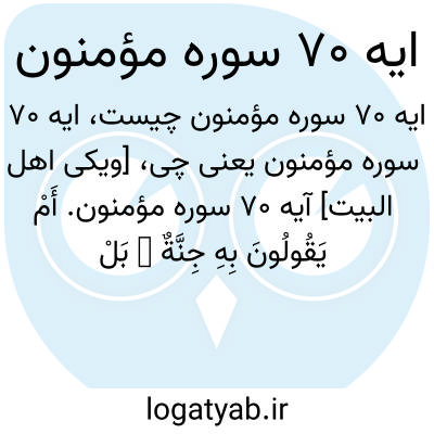 [ویکی اهل البیت] آیه 70 سوره مؤمنون. أَمْ یَقُولُونَ بِهِ جِنَّةٌ ۚ بَلْ جَاءَهُمْ بِالْحَقِّ وَأَکْثَرُهُمْ لِلْحَقِّ کَارِهُونَ