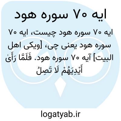 [ویکی اهل البیت] آیه 70 سوره هود. فَلَمَّا رَأَیٰ أَیْدِیَهُمْ لَا تَصِلُ إِلَیْهِ نَکِرَهُمْ وَأَوْجَسَ مِنْهُمْ خِیفَةً ۚ قَالُوا لَا تَخَفْ إِنَّا أُرْسِلْنَا إِلَیٰ قَوْمِ لُوطٍ
