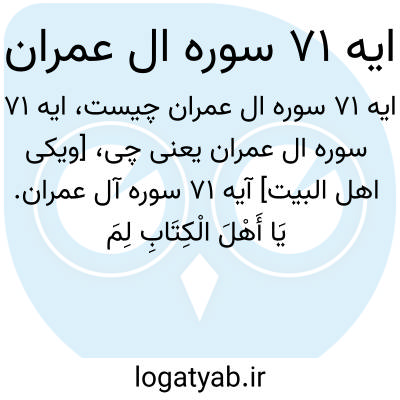 [ویکی اهل البیت] آیه 71 سوره آل عمران. یَا أَهْلَ الْکِتَابِ لِمَ تَلْبِسُونَ الْحَقَّ بِالْبَاطِلِ وَتَکْتُمُونَ الْحَقَّ وَأَنْتُمْ تَعْلَمُونَ