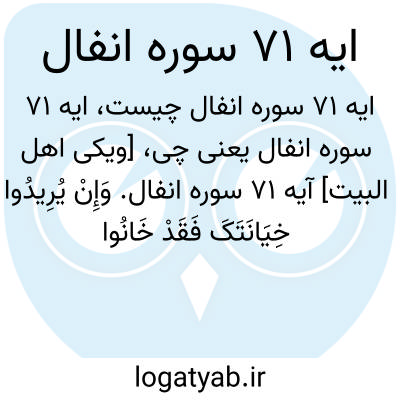 [ویکی اهل البیت] آیه 71 سوره انفال. وَإِنْ یُرِیدُوا خِیَانَتَکَ فَقَدْ خَانُوا اللَّهَ مِنْ قَبْلُ فَأَمْکَنَ مِنْهُمْ ۗ وَاللَّهُ عَلِیمٌ حَکِیمٌ