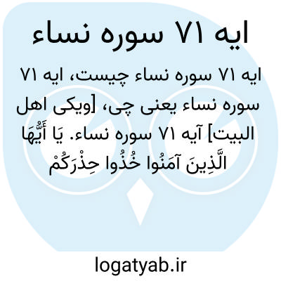 [ویکی اهل البیت] آیه 71 سوره نساء. یَا أَیُّهَا الَّذِینَ آمَنُوا خُذُوا حِذْرَکُمْ فَانْفِرُوا ثُبَاتٍ أَوِ انْفِرُوا جَمِیعًا