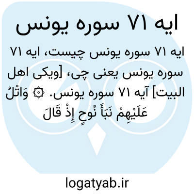 سرگذشت نوح را بر آنها بخوان! در آن هنگام که به قوم خود گفت: «ای قوم من! اگر تذکّرات من نسبت به آیات الهی، بر شما سنگین (و غیر قابل تحمّل) است، (هر کار از دستتان ساخته است بکنید.) من بر خدا توکّل کرده ام! فکر خود، و قدرت معبودهایتان را جمع کنید؛ سپس هیچ چیز بر شما پوشیده نماند؛ (تمام جوانب کارتان را بنگرید؛) سپس به حیات من پایان دهید، و (لحظه ای) مهلتم ندهید! (امّا توانایی ندارید!)