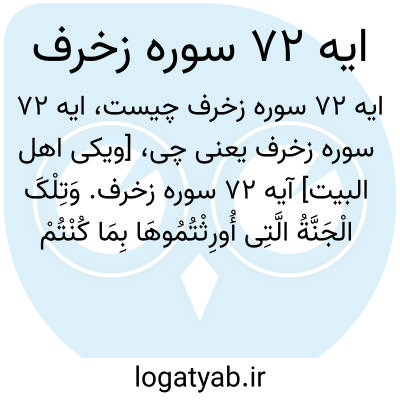 [ویکی اهل البیت] آیه 72 سوره زخرف. وَتِلْکَ الْجَنَّةُ الَّتِی أُورِثْتُمُوهَا بِمَا کُنْتُمْ تَعْمَلُونَ