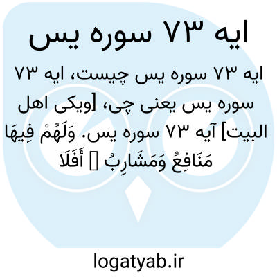 [ویکی اهل البیت] آیه 73 سوره یس. وَلَهُمْ فِیهَا مَنَافِعُ وَمَشَارِبُ ۖ أَفَلَا یَشْکُرُونَ