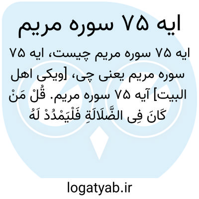 [ویکی اهل البیت] آیه 75 سوره مریم. قُلْ مَنْ کَانَ فِی الضَّلَالَةِ فَلْیَمْدُدْ لَهُ الرَّحْمَٰنُ مَدًّا ۚ حَتَّیٰ إِذَا رَأَوْا مَا یُوعَدُونَ إِمَّا الْعَذَابَ وَإِمَّا السَّاعَةَ فَسَیَعْلَمُونَ مَنْ هُوَ شَرٌّ مَکَانًا وَأَضْعَفُ جُنْدًا
