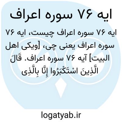 [ویکی اهل البیت] آیه 76 سوره اعراف. قَالَ الَّذِینَ اسْتَکْبَرُوا إِنَّا بِالَّذِی آمَنْتُمْ بِهِ کَافِرُونَ